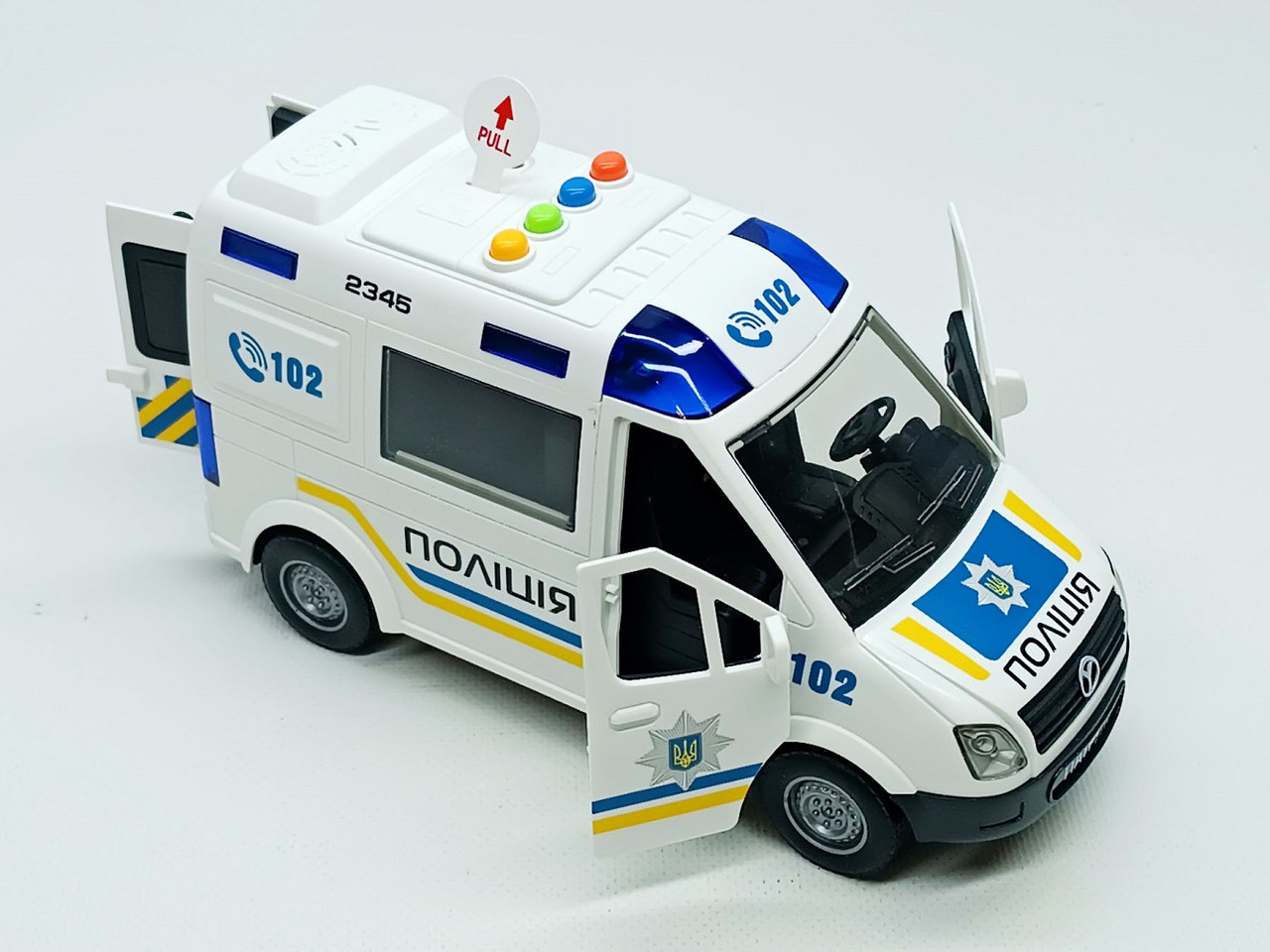 1. інтерактивність: Під час натискання на кнопки, розташовані на даху автомобіля, спалахують сигнальні вогні та відтворюється звук сирени, а також звучить пісня українською мовою. Це додає іграшці реалістичності та робить гру більш захопливою.