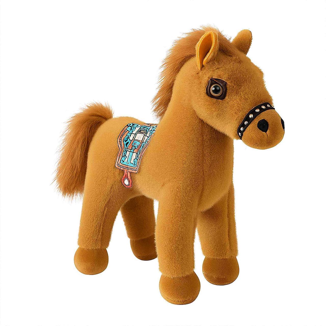 М’яка іграшка Кінь коричневий 18 см — символ 2026 року, музична плюшева конячка з присоскою